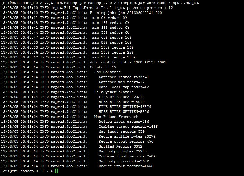 運行命令執行此jar,統計個數。并將輸出結果放在output目錄下。命令如下: