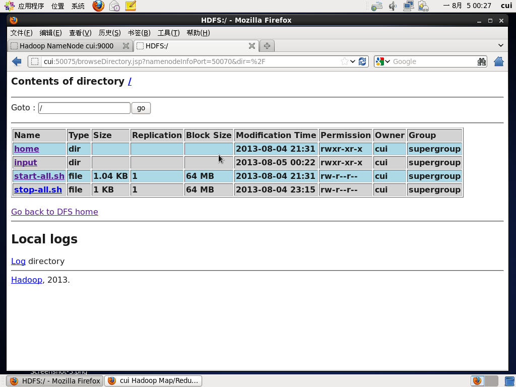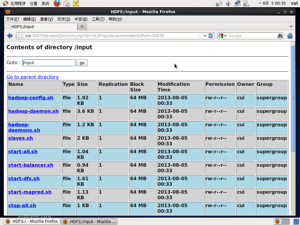 通過瀏覽器查看input文件夾下是否已經存在所存放的文件。