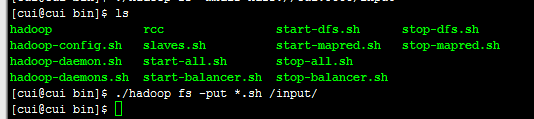 第三步:將bin目錄下的所有文件放到hadoop文件系統的input目錄下。