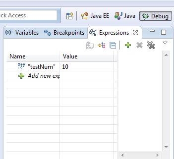 按Ctrl+Shift+D或者Ctrl+Shift+I來(lái)顯示選定變量或者表達(dá)式的值。我們也可以給一個(gè)變量或表達(dá)式添加永久觀察點(diǎn),當(dāng)程序在調(diào)試時(shí),這些觀察點(diǎn)就會(huì)在表達(dá)式視圖(Expression view)中顯示出來(lái)。