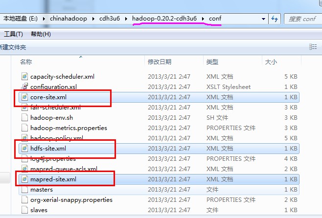 7、將core-site.xml,hdfs-site.xml,mapred-site.xml放入到此文件夾中。