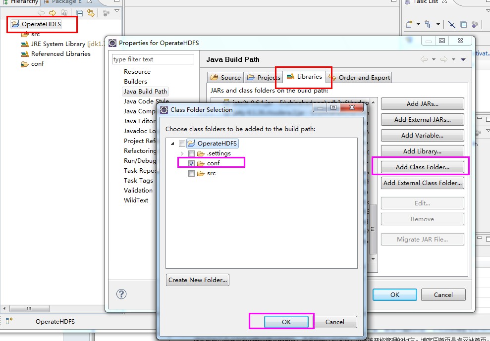 4、選中OperateHDFS,右擊,選擇“property”,彈出右側的窗口;