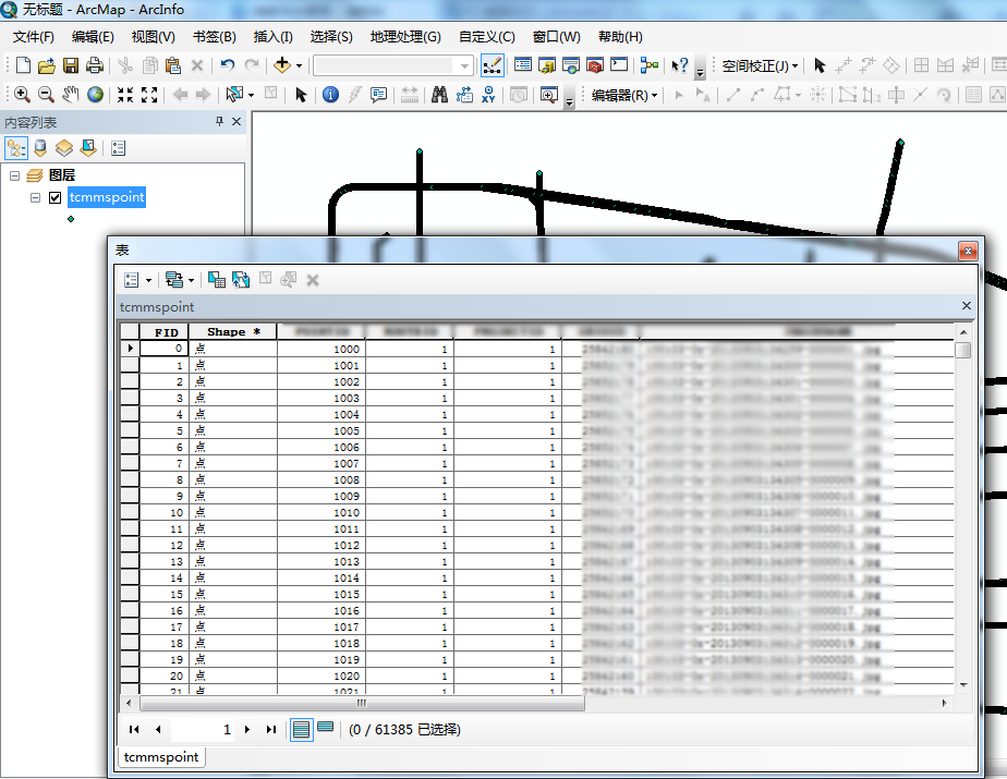 可以看到,最終得到的Shapefile保持了原Oracle數據表所有的字段信息。