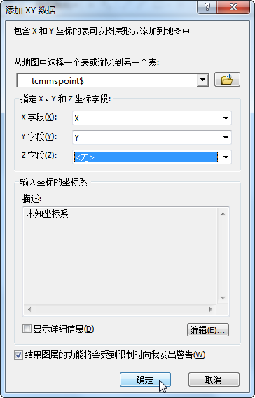 選擇上一步得到的XLS數據文件,并分別指定X字段、Y字段所對應的坐標字段。