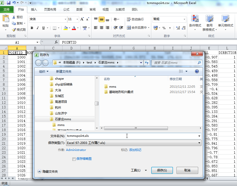 用Excel打開上一步導出的CSV文件,另存為XLS格式文件(注意使用Excel 97-2003工作簿格式)。