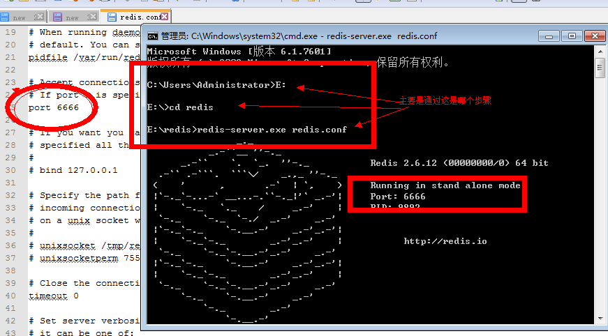 4.通過反復(fù)上面的三個(gè)步驟并且可以修改redis.conf中的prot端口號來進(jìn)行測試,我這里修改為6666.