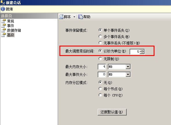 它描述了事件從被觸發(fā)到寫入到Target最長的等待時間,默認值是30秒,如果你使用和SQLSERVER Profiler client-side tracing
