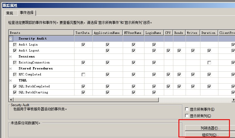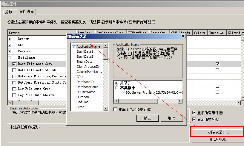 那么發(fā)生在其他數(shù)據(jù)庫的sql_statement_starting事件就不會被該Session所收集,Profiler可以為所有事件設(shè)置一個Column Filter,