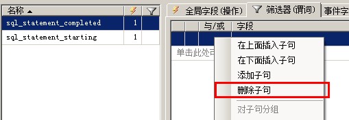 比如sql_statement_starting的statement列就可以被取消選擇。