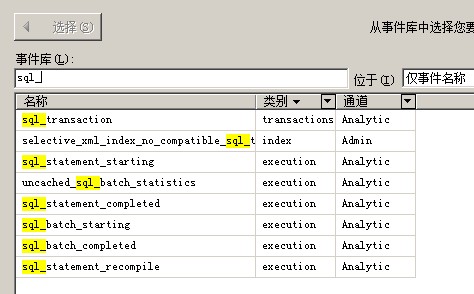 事件過濾,比如我在在事件庫的輸入框里輸入sql_,所有名字含有sql_字樣的事件都被列了出來并且高亮顯示