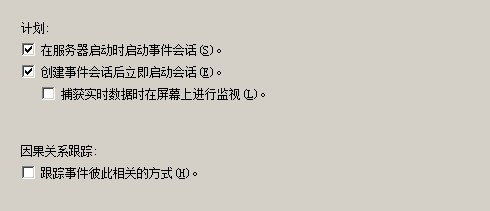 下面有一些選項,例如在服務(wù)器啟動時啟動事件會話,你可以根據(jù)自己實際情況進行勾選