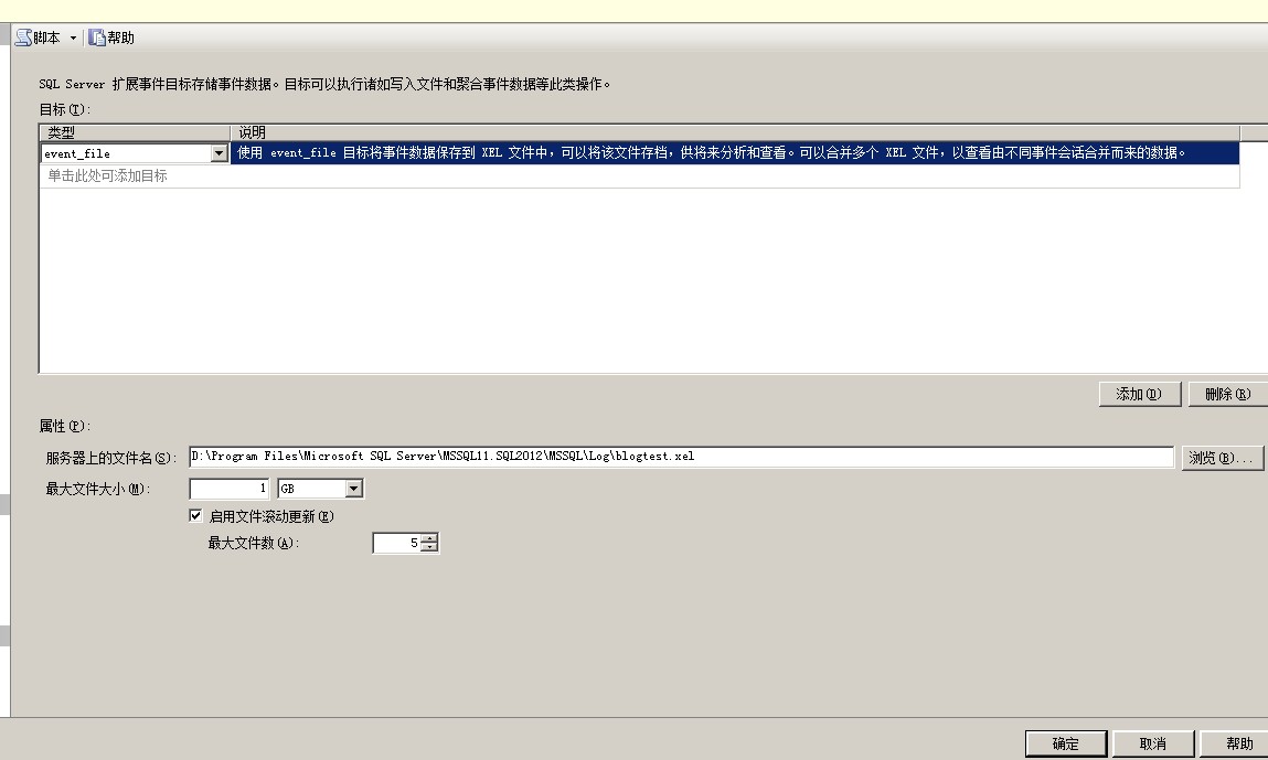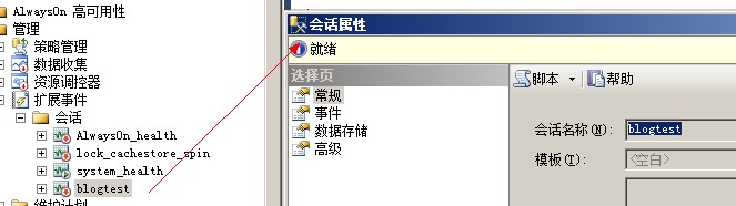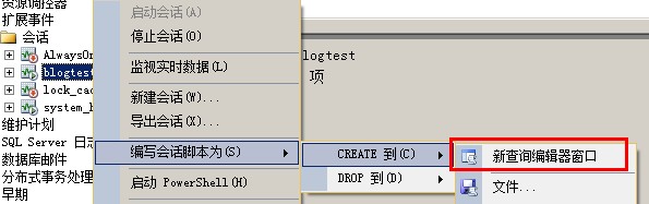 如果你想查看怎麼用TSQL語句的方式能創(chuàng)建剛才blogtest事件會話,可以用編寫腳本的方式