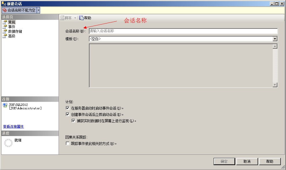 點擊-》新建會話向?qū)?,SQLSERVER會一步一步引導(dǎo)您怎麼新建一個會話