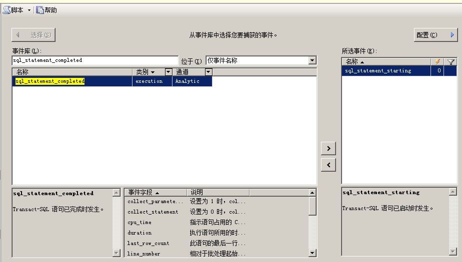 我們選擇sql_statement_starting和sql_statement_completed事件
