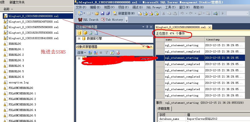 上面那個blogtest_0_130315881898000000.xel一共收集了474個事件