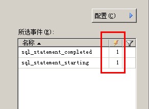配置完畢之后,會看到sql_statement_starting(事件)和sql_statement_completed(事件)后面的閃電圖標列有一個動作與之關(guān)聯(lián)