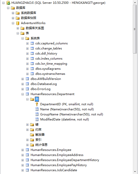 現(xiàn)在先來對(duì)HumanResources.Department 表修改一下,把name的長(zhǎng)度加長(zhǎng):