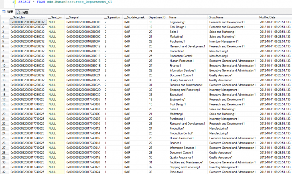 sys.fn_cdc_get_min_lsn('cdc.HumanResources_Department_CT')[捕獲實(shí)例的lsn]