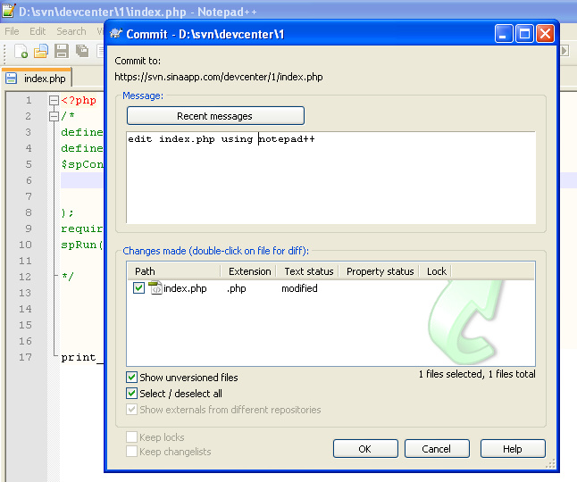 點擊Plugins --> Subversion --> Commit File(或使用快捷鍵Ctrl+Alt+A)