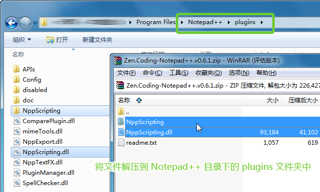 將解壓所得的文件放入 Notepad++ 程序的安裝目錄下的plugins文件夾。