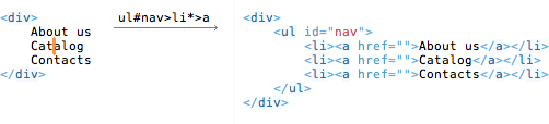 比如寫下 div#page>div.logo+ul>li*3>a ,按一下 Ctrl+E,立馬就可以轉化成: