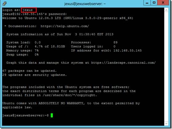 【注】虛擬機用戶名"jexus"或"root",密碼皆為"jexus"