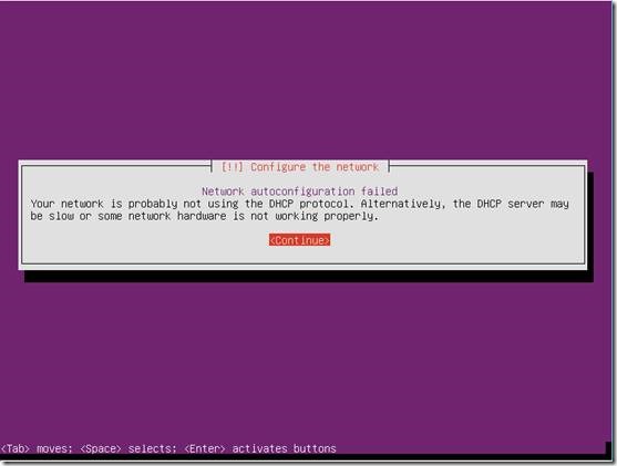 然后會開始安裝。。。顯示網絡自動配置失敗,進行手動配置即可
