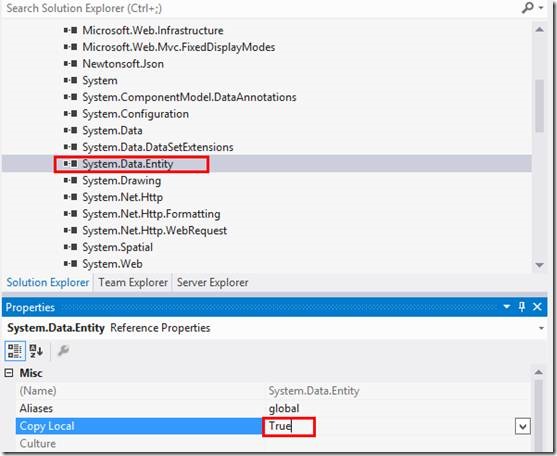 將“System.Data.Entity.dll”的“Copy Local”設置為“True”