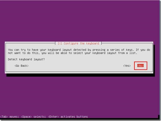 配置鍵盤,默認“No”,然后選英語鍵盤即可