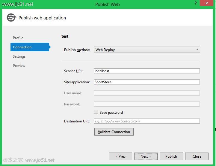 第三步,在連接選項中配置好你的網(wǎng)站地址,本地就寫localhost。(你需要提前在IIS中新建一個網(wǎng)站,并配置好該網(wǎng)站的虛擬路徑等設(shè)置)