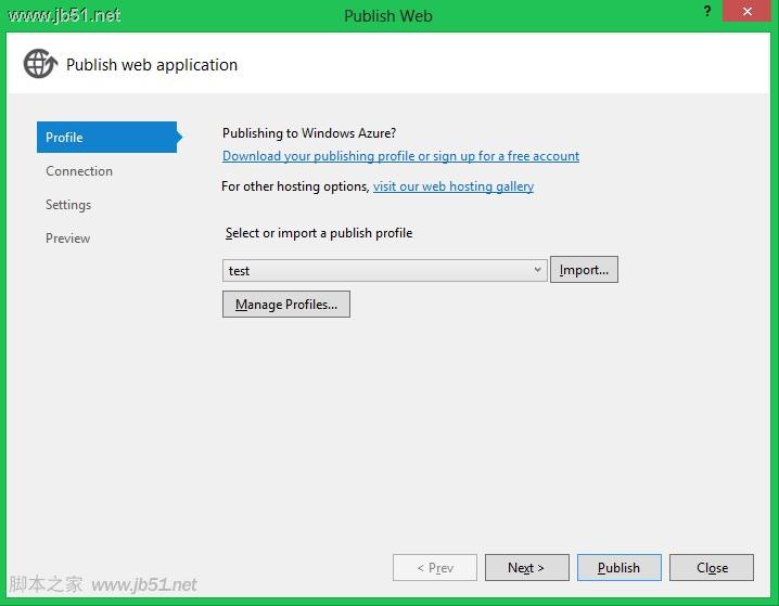 第二步,在彈出的界面中“選擇或?qū)胍粋€發(fā)布配置文件” 下拉框中選擇“新建”(上面會有微軟AZURE服務(wù)的鏈接,這里不需要,直接跳過)