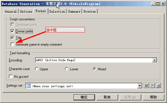 生成SQL語句時,表名和字段名都是帶雙引號,這個在ORACLE中以后使用時都要帶上""非常的麻煩,必須生成腳本時去除: