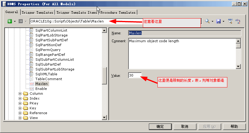 當(dāng)生成腳本時,有的表名或者列名莫名其妙的縮短了,這時因為限定了長度,這是把雙刃劍,如果要強制表名或者字段名在某個范圍內(nèi),這個作用剛好,如果不想限制,就需要修改那個限制的值了。