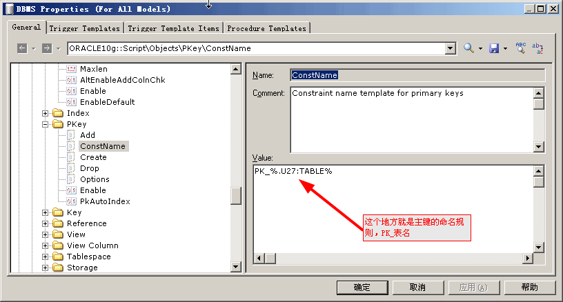 下面以主鍵為例,一般每個表都有一個主鍵,那主鍵的命名規(guī)則如何修改定義呢,
