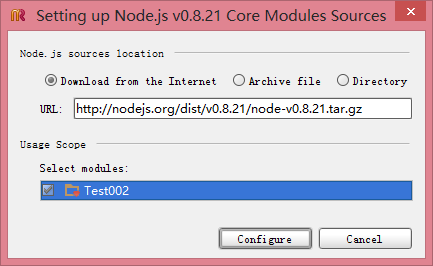 在“Node.js”對(duì)話框中,點(diǎn)“Configure”按鈕。