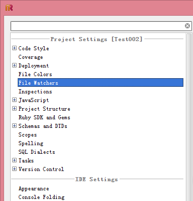 6、選中左側(cè)列表中“Project Settings”下新出現(xiàn)的“File Watcher”。
