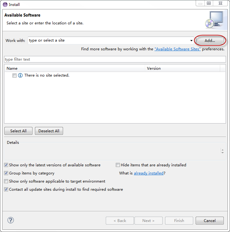 啟動 Eclipse,選擇 Help>Install New Software ...