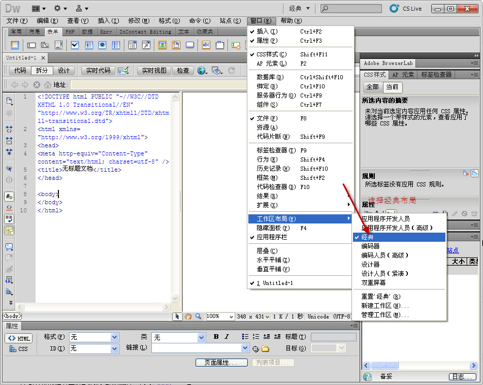 11、到這里基本上就安裝完成了,但是Adobe Dreamweaver CS5 相對于經典版本Dreamweaver 8.0來說,布局有些變化,有可能網友們不習慣,其實可以改過來的。如下圖所示: