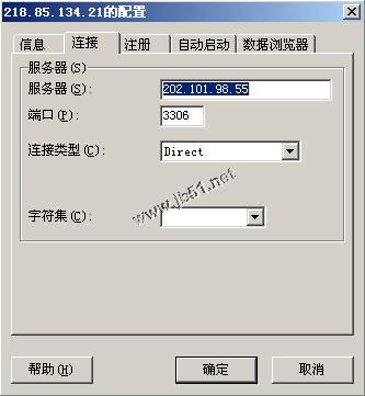 四、輸入MYSQL服務器的IP地址,例如:202.101.98.55,如下圖