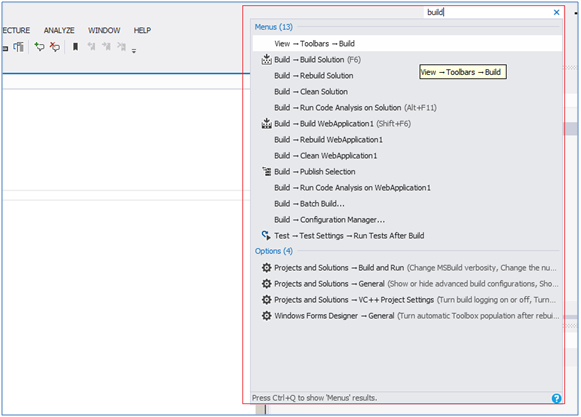 支持對IDE中任意項目(比如菜單項)的搜索。
