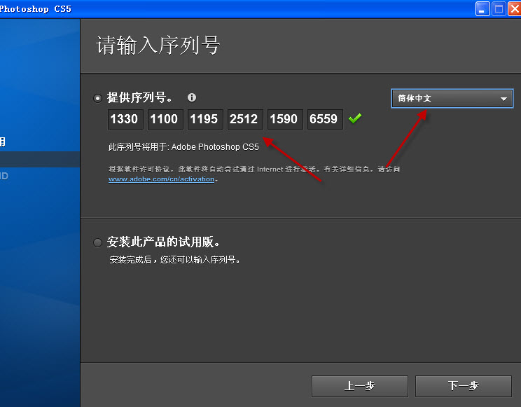 5、要輸入序列號,呵呵,那就給一個吧。注意,在這里大家用注冊機弄一個注冊碼出來后,不要關了注冊機,不要再點generate按鈕,也就是保證上面的注冊碼是你使用的那個。等安裝完成后,點擊patch來修改hosts文件,防止Adobe Photoshop CS5升級使注冊碼失效。切記!!!大部分網(wǎng)友注冊碼失效就是這里錯了。