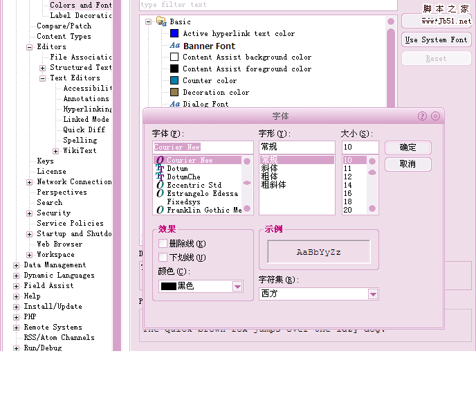 在右邊,選擇基本(Basic)->內容提示背景色(Content Assistant background color),然后點右上邊“重置(Reset)”旁邊的那個顏色選框,自己選一個喜歡的就好了。字體大小的設置方法同上。