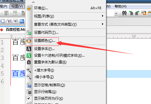 3、進行點擊了視圖菜單中之后,進行選中下拉菜單中的“設置顏色”的選項。