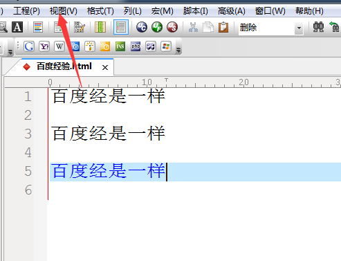 1、首先,進行打開一個UltraEdit的軟件工具之后,進行代碼的編輯器當中,進行選中文字。