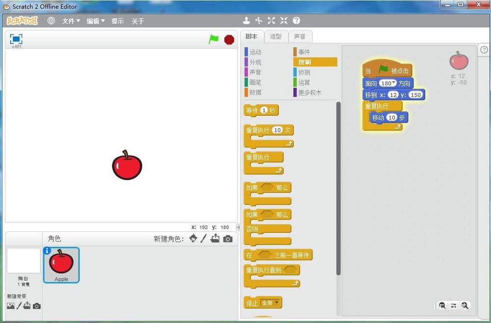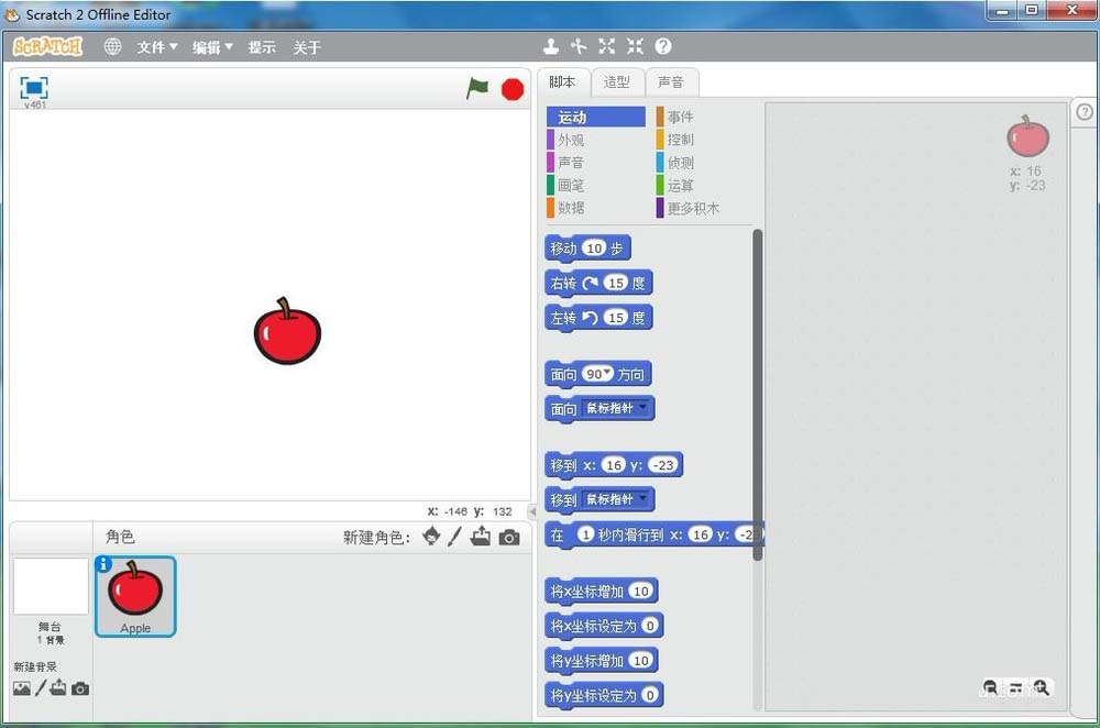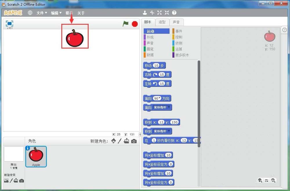 5、在scratch中創(chuàng)建了一個(gè)蘋果角色;