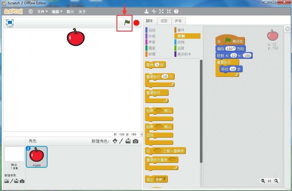8、點(diǎn)擊綠旗執(zhí)行程序;