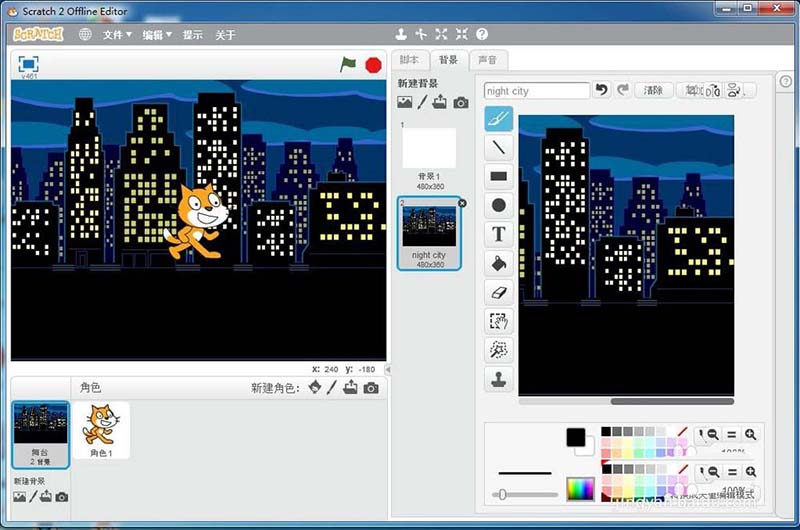 在scratch中編寫程序時(shí),為了表達(dá)不同場(chǎng)景的需要,我們要在scratch中創(chuàng)建各種不同的背景,今天來(lái)介紹一下如何創(chuàng)建一個(gè)城市夜景背景。