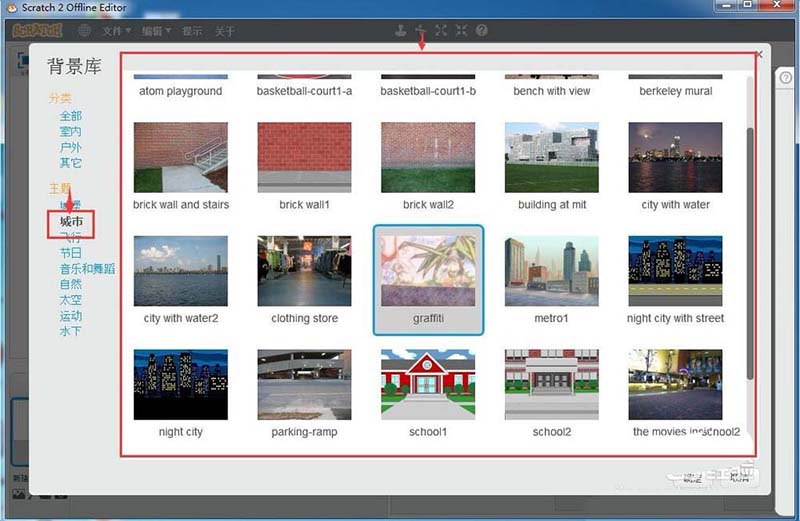 5、選擇城市類別,可以看到右邊顯示出很多城市主題的背景圖;