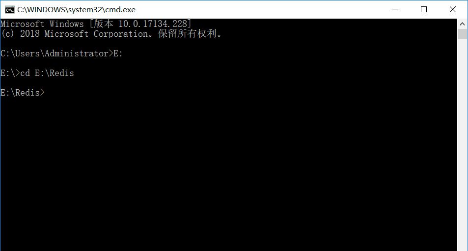 1、打開“命令行窗口”,然后把目錄指向解壓的Redis目錄(這里我的Redis解壓目錄為 E:/Redis)