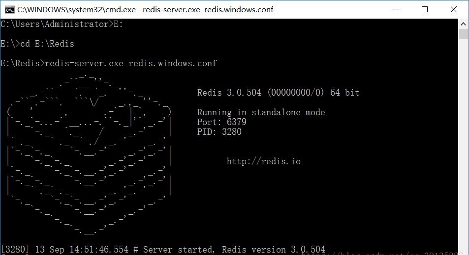 2、輸入啟動命令 redis-server.exe redis.windows.conf,出現下圖顯示則表示啟動成功了。